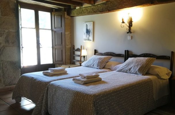 Ocupa la primera planta, consta de 4 habitaciones dobles, todas ellas con baño, salón con chimenea y cocina equipada (vitrocerámica, microondas, frigorífico, horno-microondas, lavavajillas, batidora, cafetera, tostadora)