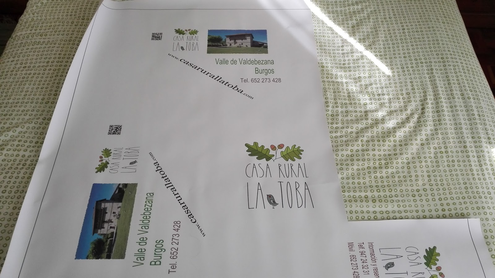 En una imprenta cercana vi que imprimían en lona, que es justo lo que necesitaba. El precio lo cobran por metros cuadrados, mínimo un metro. Yo he utilizado un metro cuadrado de lona, que me ha costado 25€. y puedes hacer los dibujos o letras que desees, siempre dentro del metro cuadrado.